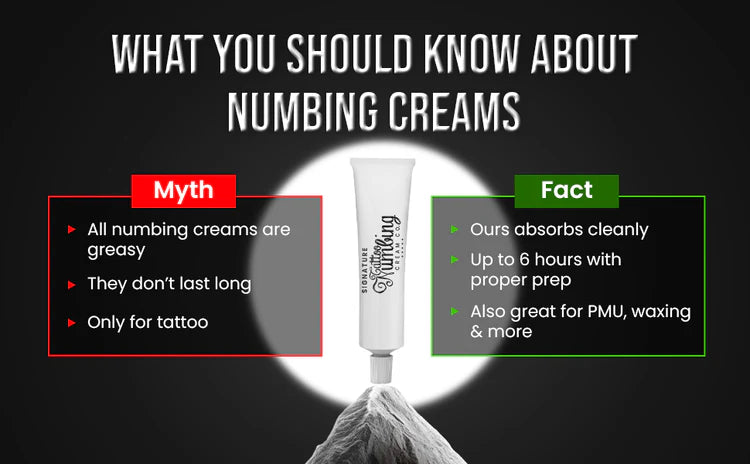 Don’t settle for myths — choose the cream trusted by professionals for long-lasting, clean-absorbing numbing. Whether it’s tattoos, PMU, or waxing, we’ve got your back.